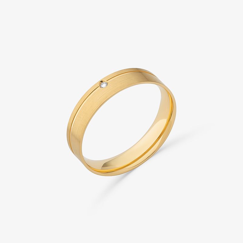 Aliança Anatômica com Diamante com Friso em Ouro Amarelo 18k