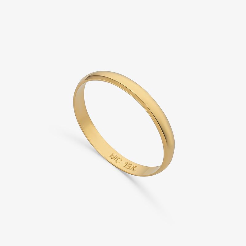 Essa aliança faz parte da coleção Felicidade. Possui design clássico e minimalista em ouro amarelo 18k.