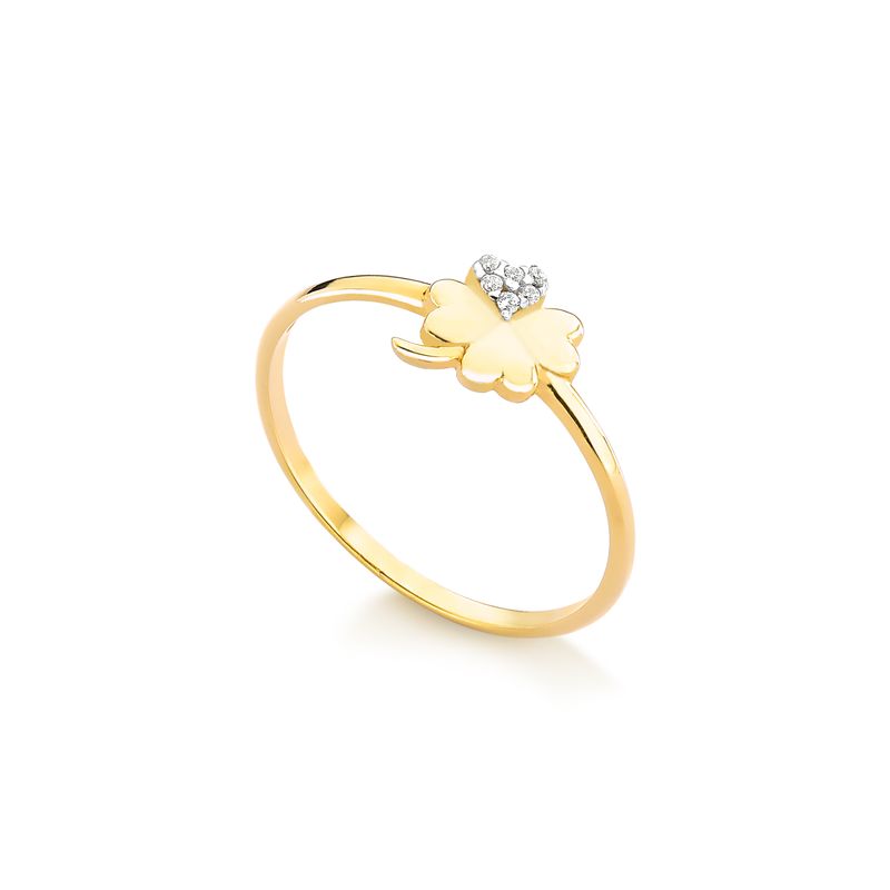 O anel trevo com Zircônia em Prata 925 com banho de Ouro Amarelo 18k faz parte da coleção Jolie Fé & Sorte, que traz joias repletas de significados com design atual e criativo.