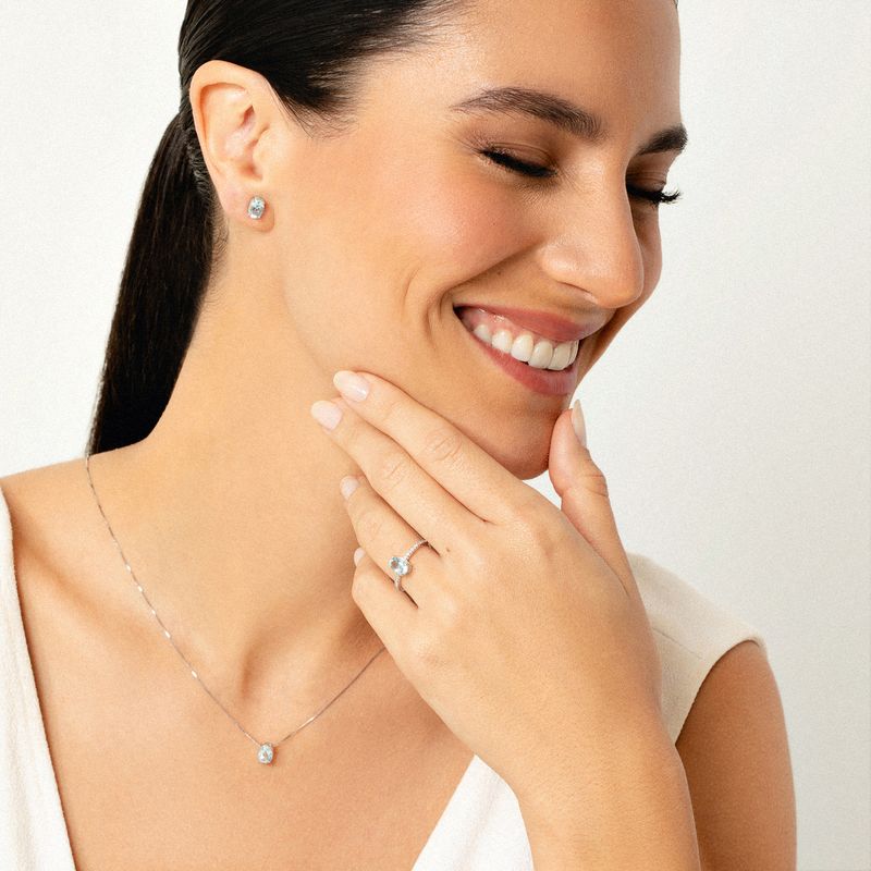 A coleção Aquarela é composta por joias criadas em prata 925 inspiradas no estilo de pintura feita com tintas aquarela, uma coleção que explora gemas coradas nas formas clássicas da joalheria. Topázio azul é conhecido por acalmar, recarregar, curar, estimular e redirecionar as energias do corpo para onde são mais necessárias.