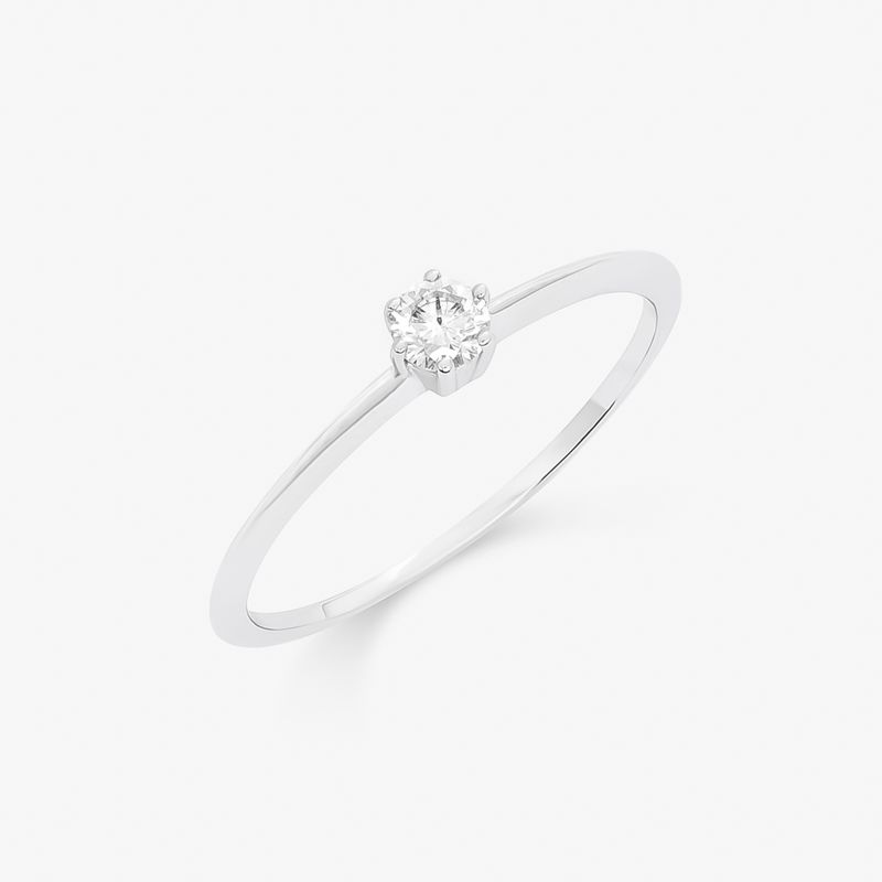 Anel Solitário com 15 Pontos de Diamantes em Ouro Branco 18k