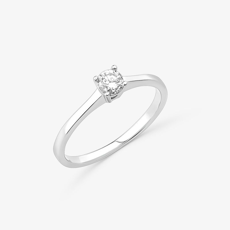 Anel Solitário com 25 pontos de Diamantes em Ouro Branco 18k