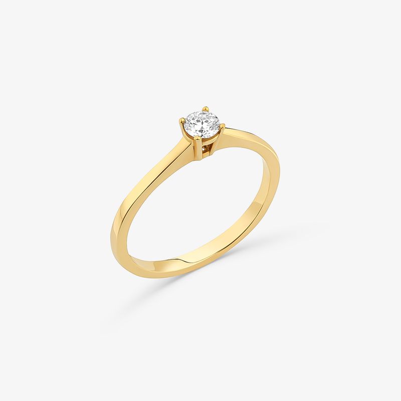 Anel Solitário com 20 pontos de Diamantes em Ouro Amarelo 18k