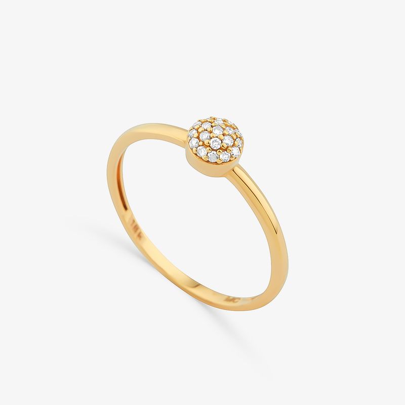 Este anel em Ouro Amarelo 18k possui volume arredondado, preenchido por 09 pontos de diamantes. Uma joia icônica que atrai olhares e suspiros por seu estilo clássico, elegante e atemporal.