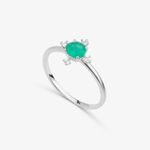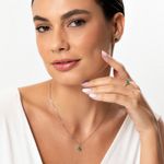 O anel floral em prata 925 desta coleção é composto por uma pedra de ágata verde no centro dando um ponto focal de luz para a joia, ao redor dela complementando o seu brilho temos o topázio incolor