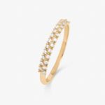 Esse anel meia aliança em ouro amarelo 18k possui design delicado e clássico, e 12 pontos de diamantes.