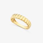 Este anel, esculpido em alto-relevo com acabamento polido, traz textura linear que cria jogo de luz e sombra e revela profundidade e brilho dinâmico. As direções verticais da textura funcionam como eixo de orientação, dando uma estética moderna e marcante.