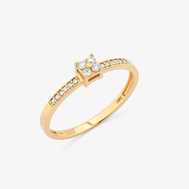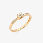 Anel Solitário com 14 Pontos de Diamantes em Ouro Amarelo 18k