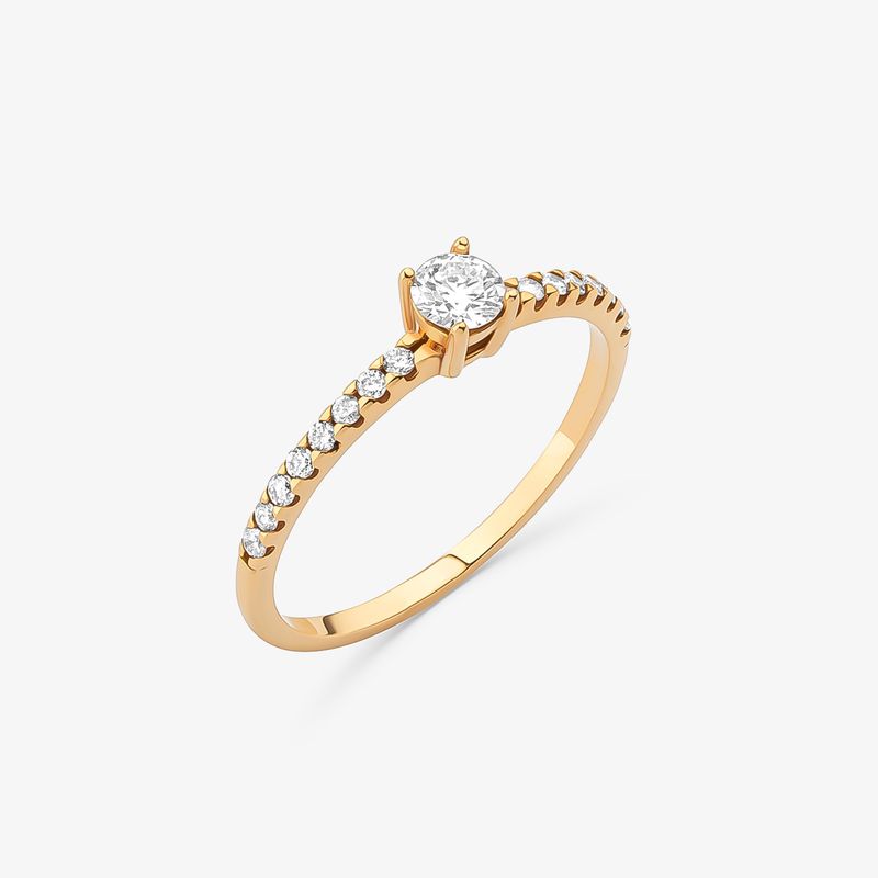 Anel Solitário com 36 Pontos de Diamantes em Ouro Amarelo 18k