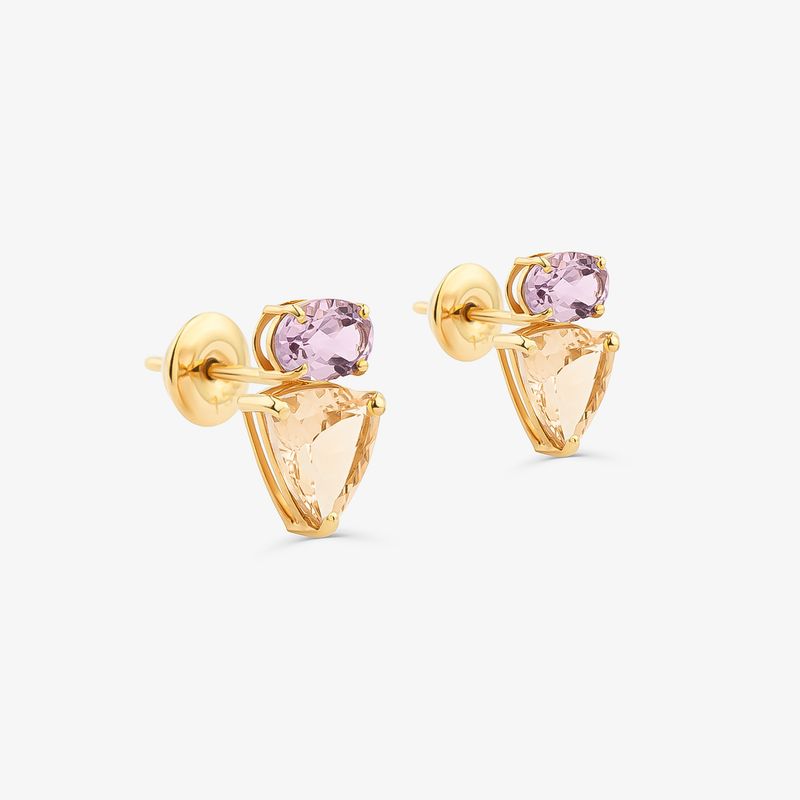 Brinco com Amestista e Morganita em Ouro Amarelo 18k