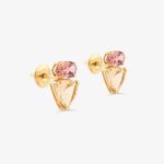 Brinco com Morganita e Turmalina Rosa em Ouro Amarelo 18k
