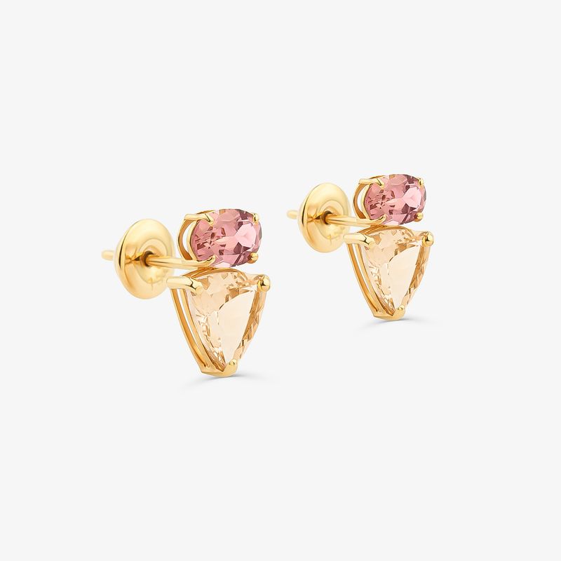 Joias NatanBrincosBrinco com Morganita e Turmalina Rosa em Ouro Amarelo 18k