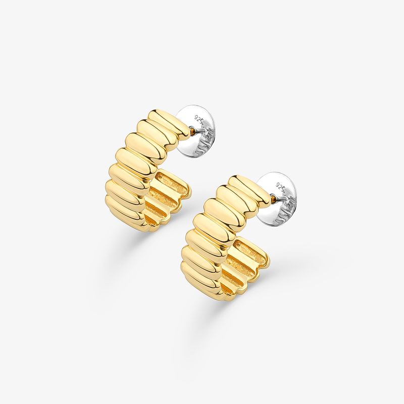 Brinco Meia Argola Textura em Prata 925 com Banho de Ouro Amarelo 18k