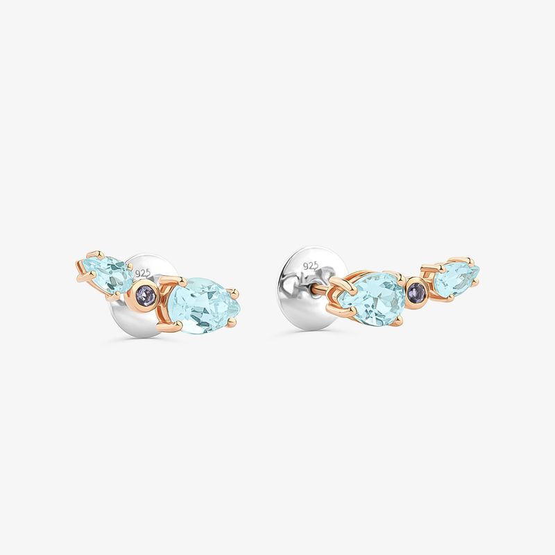 O Brinco EarCuff com Topázio e Iolita da Coleção Tulum traz a elegância que faltava a sua orelha com a pedra preciosa de Topázio Azul Sky e Iolita, em Prata 925 com Banho Ouro Rosé 18k. A montagem traz a atenção para o lóbulo, oferecendo um visual boho-chic discreto, mas que ilumina o rosto. A mistura de tons frios com o toque quente do rosé cria um efeito de pôr do sol: calmo, sofisticado e cheio de personalidade.