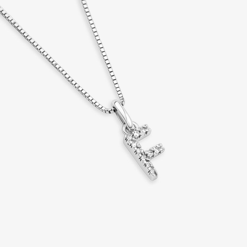 Pingente Letra F com Diamante em Ouro Branco 18k