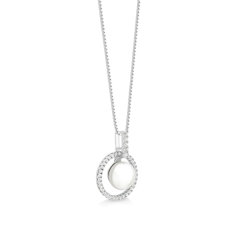Joias inspiradoras que transbordam graciosidade e sofisticação. Este pingente de pérola cravejado com topázios incolores faz parte da coleção Grace e possui design diferenciado com muito brilho, tornando-o uma joia única capaz de elevar qualquer produção.