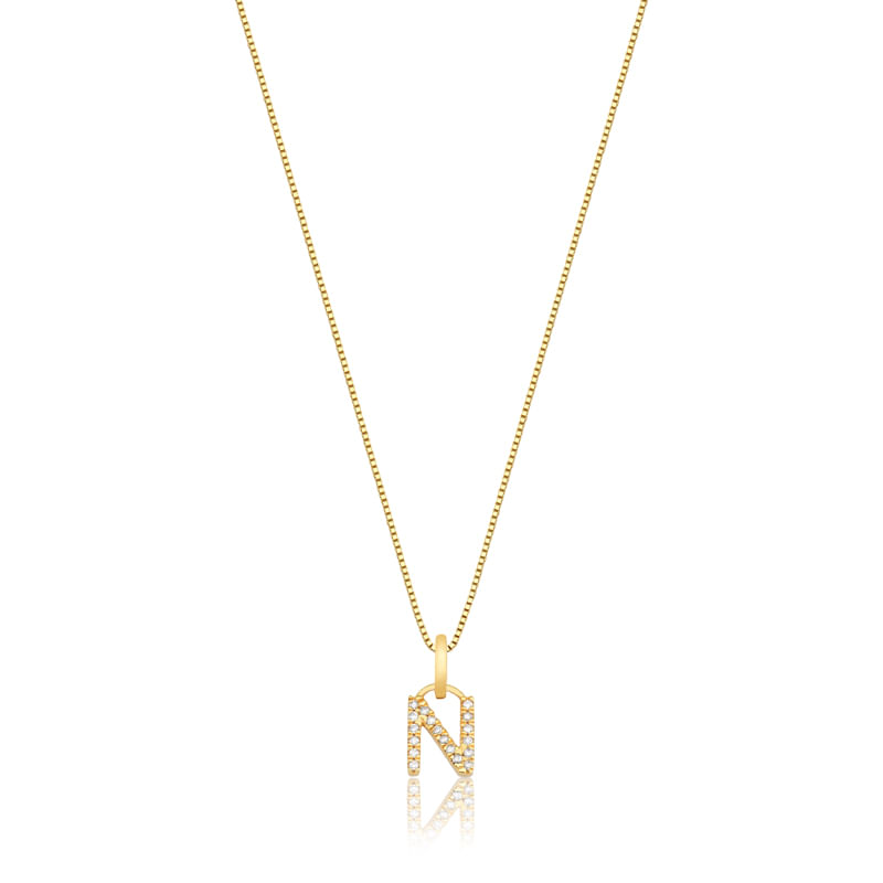 Pingente Letra N com Diamante em Ouro Amarelo 18k