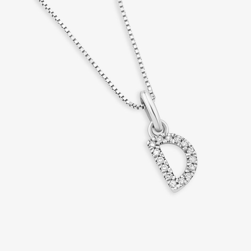 Pingente Letra D com Diamante em Ouro Branco 18k
