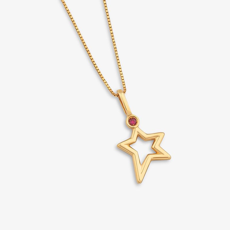 Pingente Estrela em Ouro Amarelo 18k com Rubi