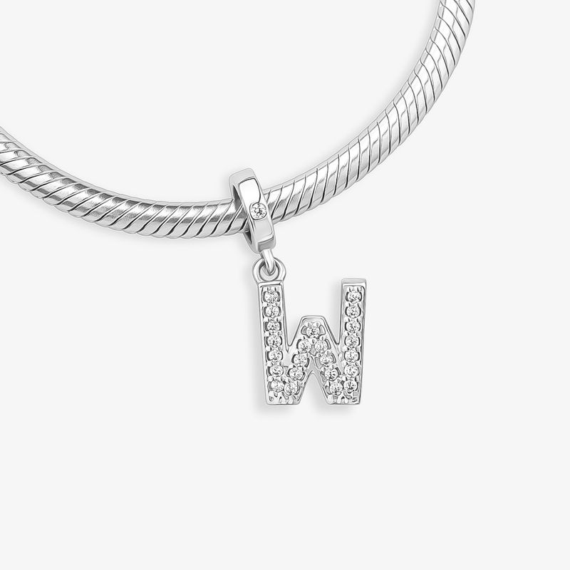 Charm Letra W Cravejado Em Prata 925