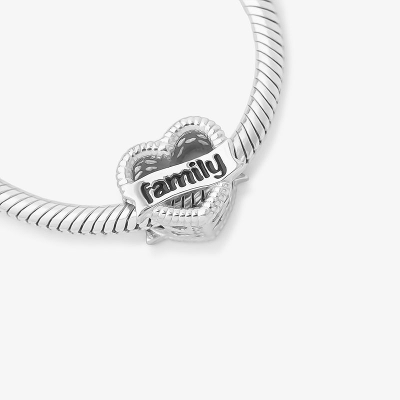 Esse charm faz parte da coleção Jolie Família, uma verdadeira homenagem as pessoas que mais amamos. Possui design em Prata 925 em forma de coração e a palavra ?Family? no centro. Monte a sua pulseira maleável inspirada em momentos e pessoas únicas da sua vida!