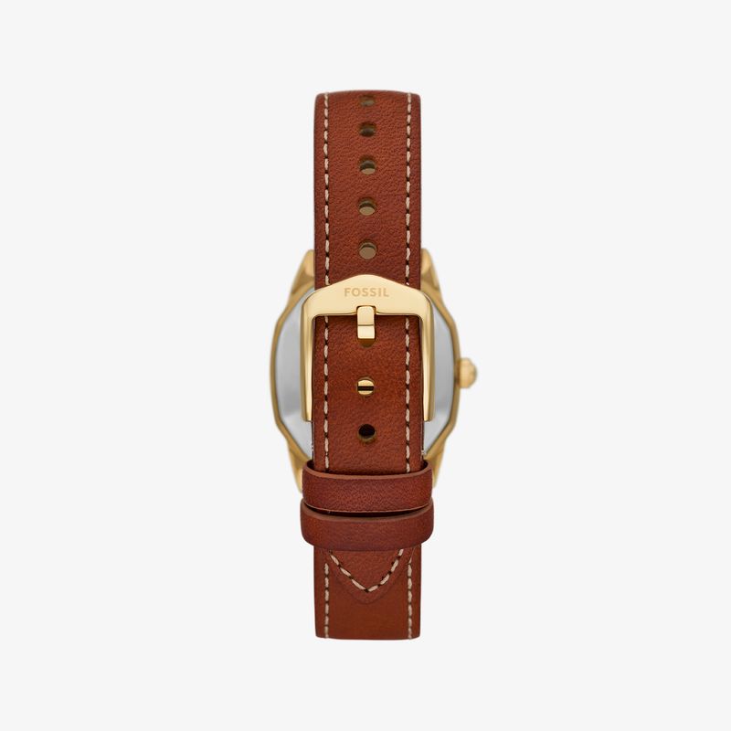 A pulseira em couro marrom traz profundidade e estilo, harmonizando perfeitamente com os tons quentes da caixa. Produzido com materiais de alta qualidade, como aço inoxidável e couro legítimo, o modelo oferece resistência à água até 3 ATM, ideal para o uso no dia a dia.