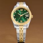 A pulseira bicolor em aço adiciona um toque de luminosidade e contraste, elevando o visual com um charme clássico. Já os ponteiros luminosos garantem leitura fácil em qualquer momento do dia, unindo funcionalidade e estilo.
